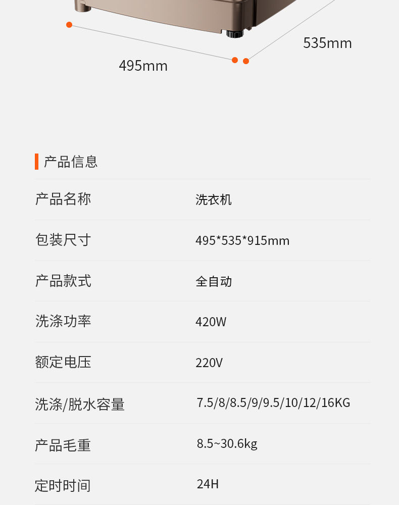 先科洗衣机全自动家用10公斤波轮小型洗脱一体洗衣机出租房用宿舍